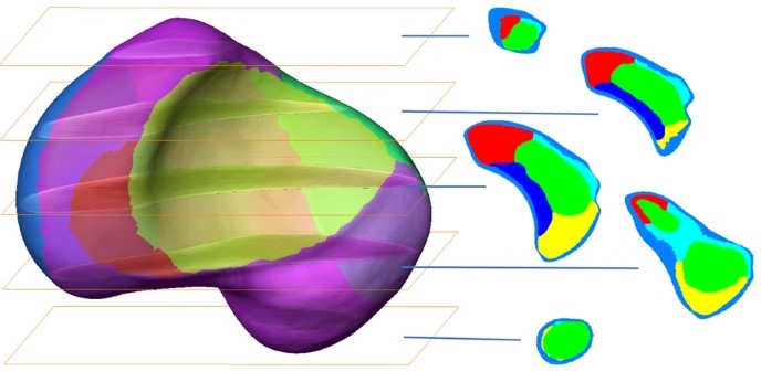 In Amira, the HU of non-osseous tissue with HU less than 0 were set to 0. All images of the left hand were mirrored to the right. Standard threshold-based, semi-automated image segmentation was performed to create 3D computer models of each scaphoid. Nutrient foramina which could be identified due to the high scan resolution were closed manually to facilitate the subsequent data processing. HR-pQCT post-processing resulted in two types of 3D statistical models of the scaphoid: a 3D statistical surface model that demonstrated 3D size and shape and variation patterns of the bony and cartilage surfaces of the scaphoid (external configuration), and a 3D averaged bone density model which provided information about the scaphoid’s internal configuration.