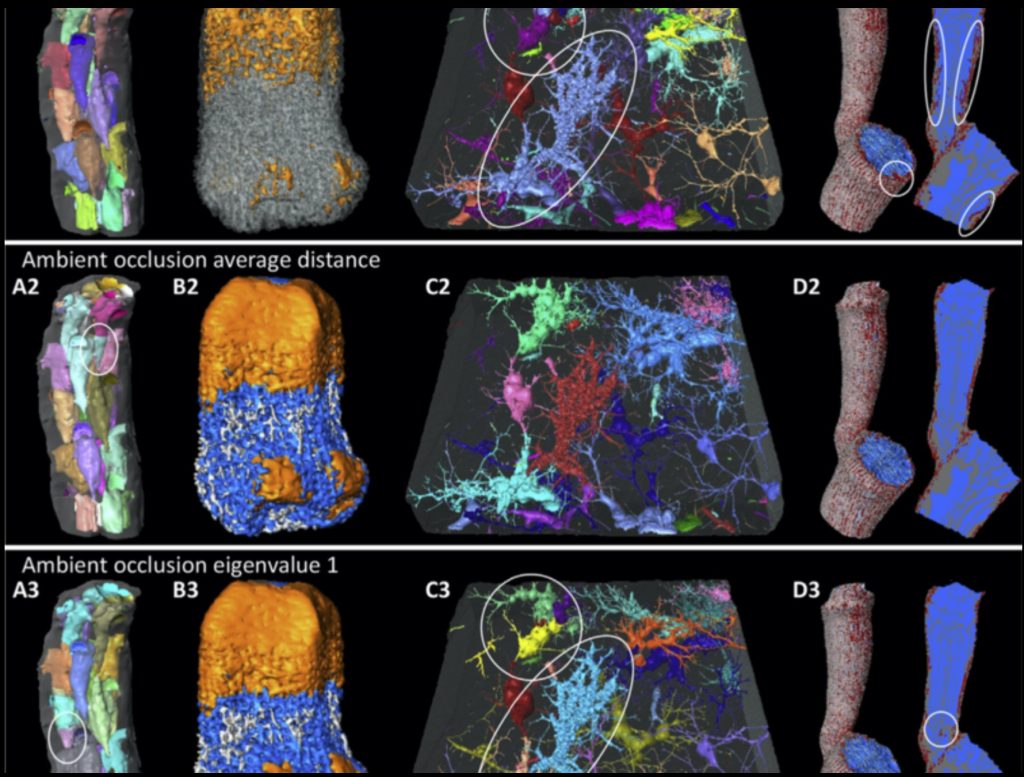 During the last decades, X-ray (micro-)computed tomography has gained increasing attention for the description of porous skeletal and shell structures of various organism groups. However, their quantitative analysis is often hampered by the difficulty to discriminate cavities and pores within the object from the surrounding region. Herein, we test the ambient occlusion (AO) algorithm and newly implemented optimisations for the segmentation of cavities (implemented in the software Amira). (…) Additionally, we evaluated the potential of the AO field and AO-derived fields for the separation and classification of cavities as well as skeletal structures by comparing them with commonly used distance-map-based segmentations. (…) Furthermore, the application of the developed segmentation algorithm is not restricted to X-ray (micro-)computed tomographic data but may potentially be useful for the segmentation of 3D volume data from other sources.