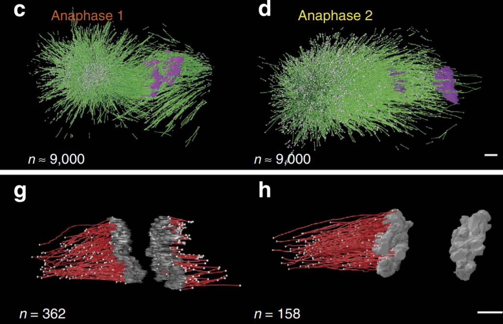 We applied the Amira software package with an extension to the filament editor of the Amira visualization and data analysis software for the segmentation and automatic tracing of microtubules. We also used the Amira software to stitch the obtained 3D models in z to create full volumes of the recorded spindles. Data analysis was performed using either the Amira software or by Matlab.
