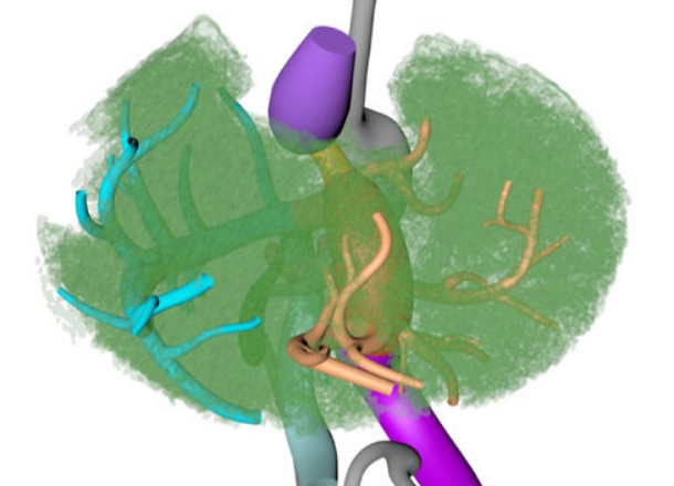 Couinaud based his well-known subdivision of the liver into (surgical) segments on the branching order of portal veins and the location of hepatic veins. However, both segment boundaries and number remain controversial due to an incomplete understanding of the role of liver lobes and vascular physiology on hepatic venous development. Human embryonic livers (5–10 weeks of development) were visualized with Amira 3D-reconstruction and Cinema 4D-remodeling software.