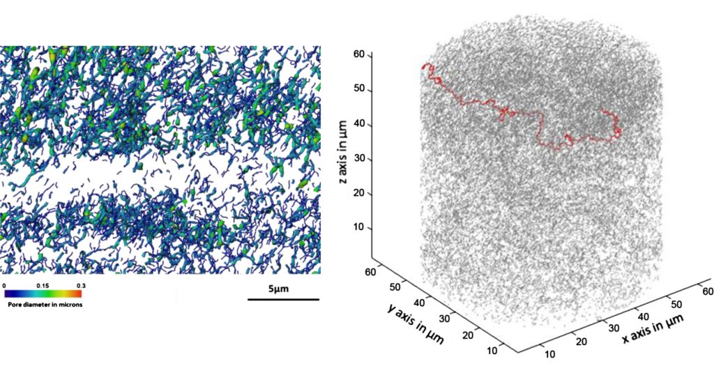 The reconstructed data was then analysed using Avizo standard 7.0 to segmentand visualise the virtual slices and 3D volume renderings. For the Versa XRM datasets the porosity in the Buffer, IPyC and OPyC layers was segmented using the adaptive thresholding technique as described in Section 3.3. As the width of the pores is relatively narrow and pore morphology fairly consistent, a baseline image was created using a morphological closing filter (dilation followed by erosion of same kernel size). This process averages the grey scale values of neighbouring voxels so that the pores could be adaptively extracted by subtracting the original image from the filtered image resulting in a pore outline.